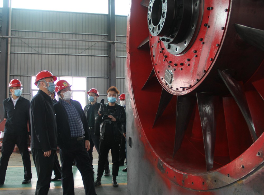 (王江平副部長在鼓壓風機制造事業部了解公司產品)