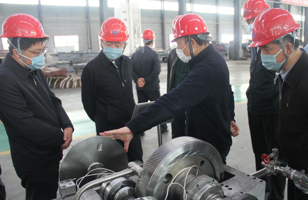 2020年4月7日下午,中央指導組成員、工信部黨組成員、副部長王江平,湖北省經信廳廳長王琪揚等一行到湖北三峰透平裝備股份有限公司(原湖北省風機廠有限公司)深入各制造事業部,了解企業的防疫與復工復產情況。