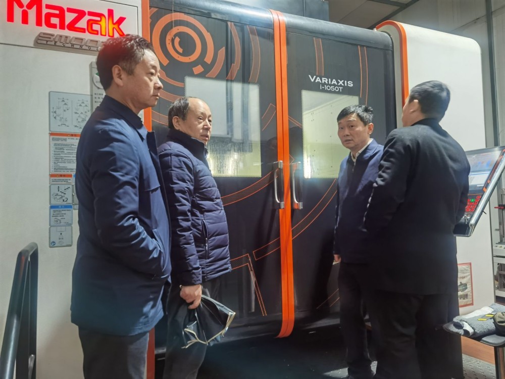 省經(jīng)信廳副廳長(zhǎng)郭濤(右二)參觀(guān)五軸加工中心