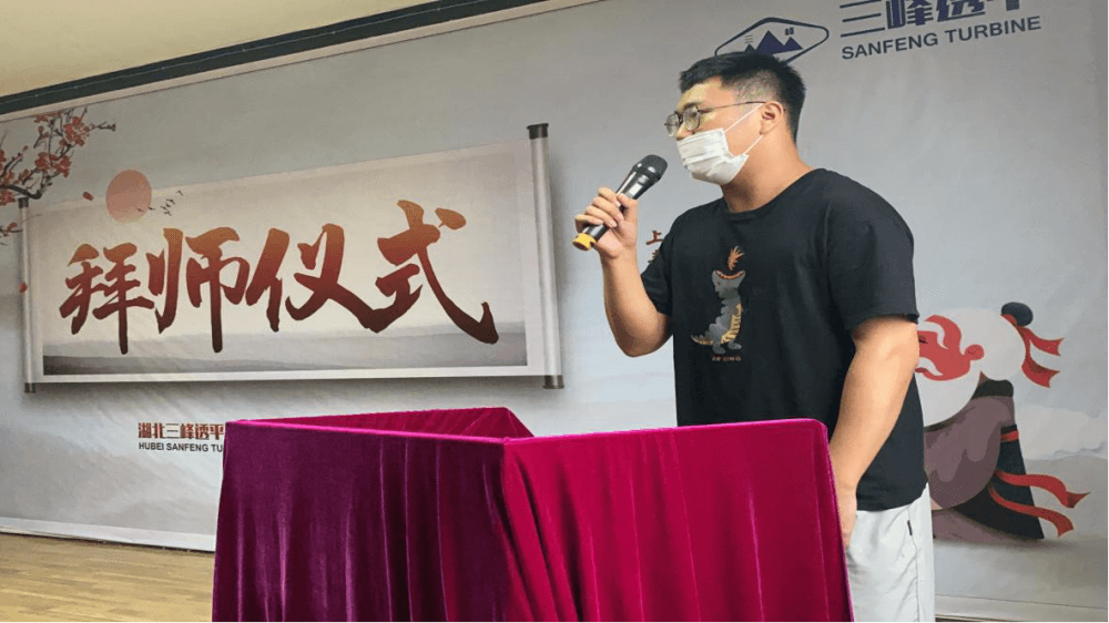 汪雨航作為徒弟代表發言,他代表全體徒弟對師父們的悉心教導,耐心幫助致以崇高的敬意!并表示愿意以師傅為榜樣,勤學、勤問、勤聽,以真誠的學習態度悉心進取,盡快成長為三峰的中堅力量。